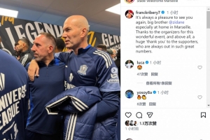 里贝里社媒晒与齐达内合照:很高兴再次见到你,老大哥